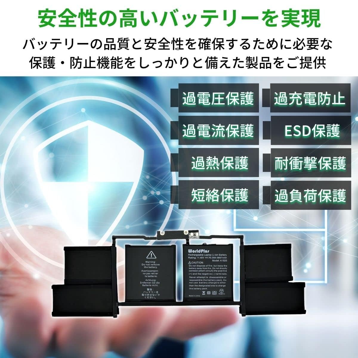 World Plus A1820 互換バッテリー MacBook Pro 15インチ 2016 2017 (A1707) 交換用