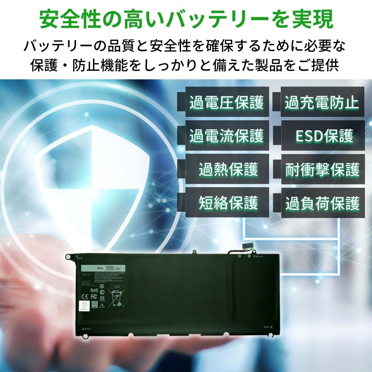 ◆適合バッテリー型番:0DRRP 0N7T6 5K9CP 90V7W DIN02 JD25G JHXPY RWT1R ◆適合パソコン型番:Dell XPS 13 9350 series, Dell XPS 13 9343 series ※詳細はページ下部の「商品紹介」に記載しています。 ※適合するバッテリー型番とパソコン型番の両方の一致を確認した上でご購入下さい。