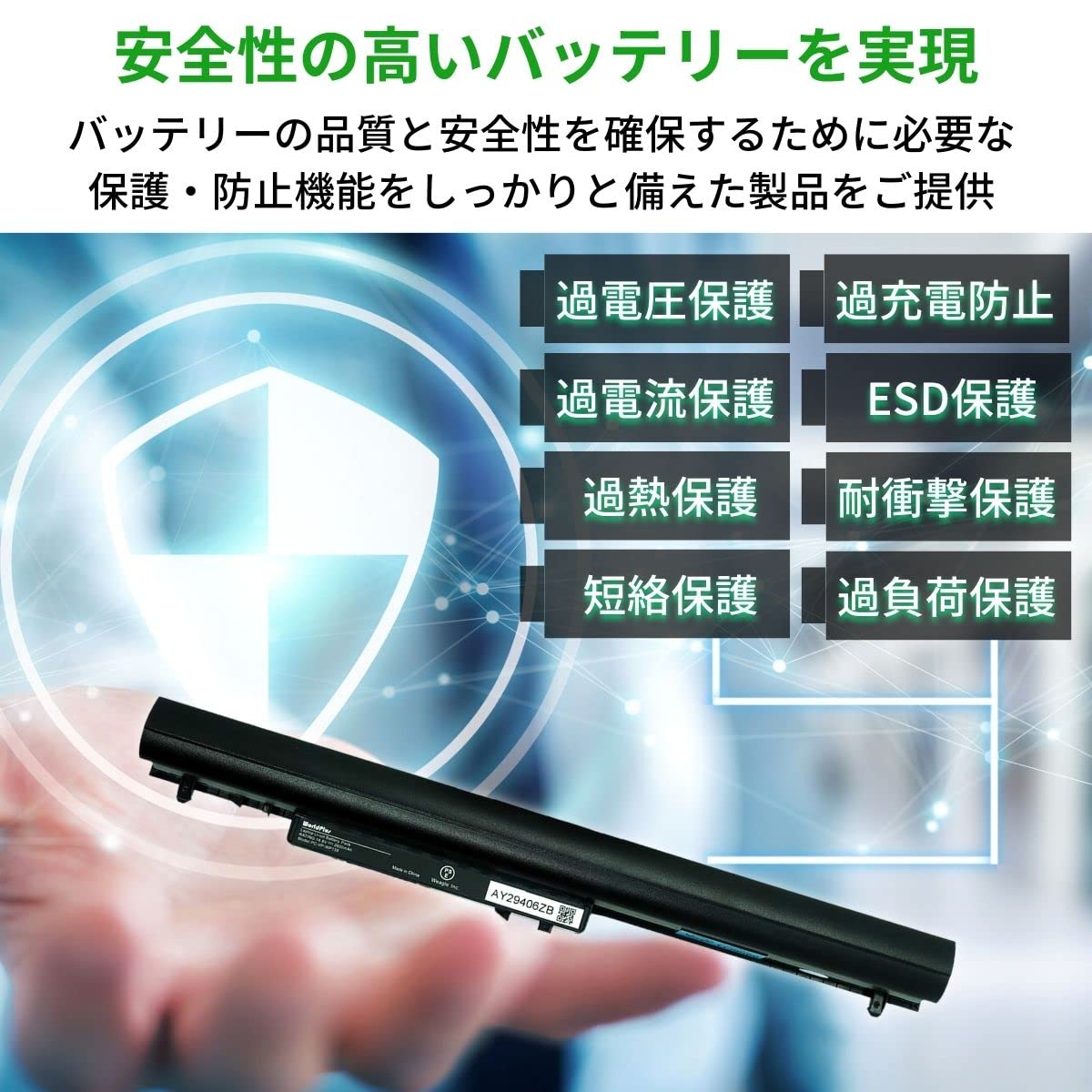 ◆日本独自の高い安全基準(PSE)に適合済。◆万全な防止機能:過電流保護・過充電防止・過放電防止、短絡保護などの機能付き。
