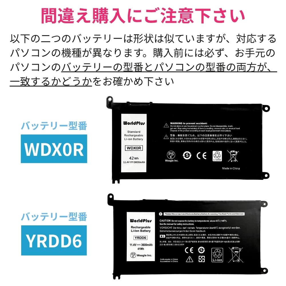 WorldPlus Dell デル Inspiron 13 14 15 17 Latitude 13 14 15 Vostro 14 15 交換バッテリー WDX0R 互換