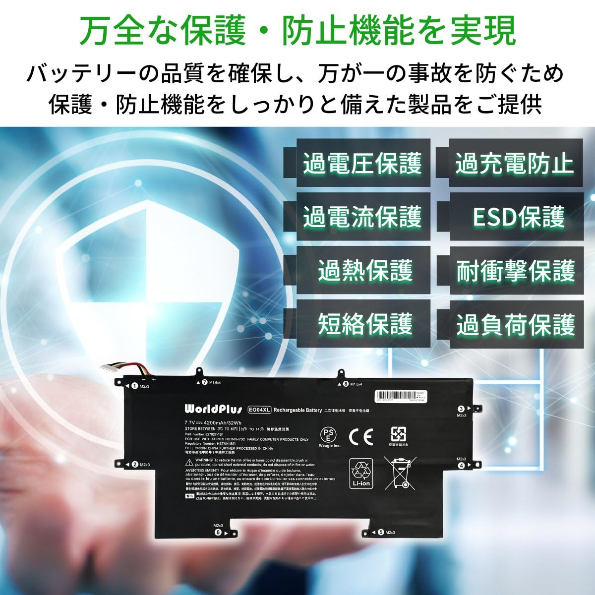 WorldPlus EO04XL バッテリー HP EliteBook Folio G1 - V1C36EA V1C37EA V1C39EA V1C40EA V1C42EA V1C43EA