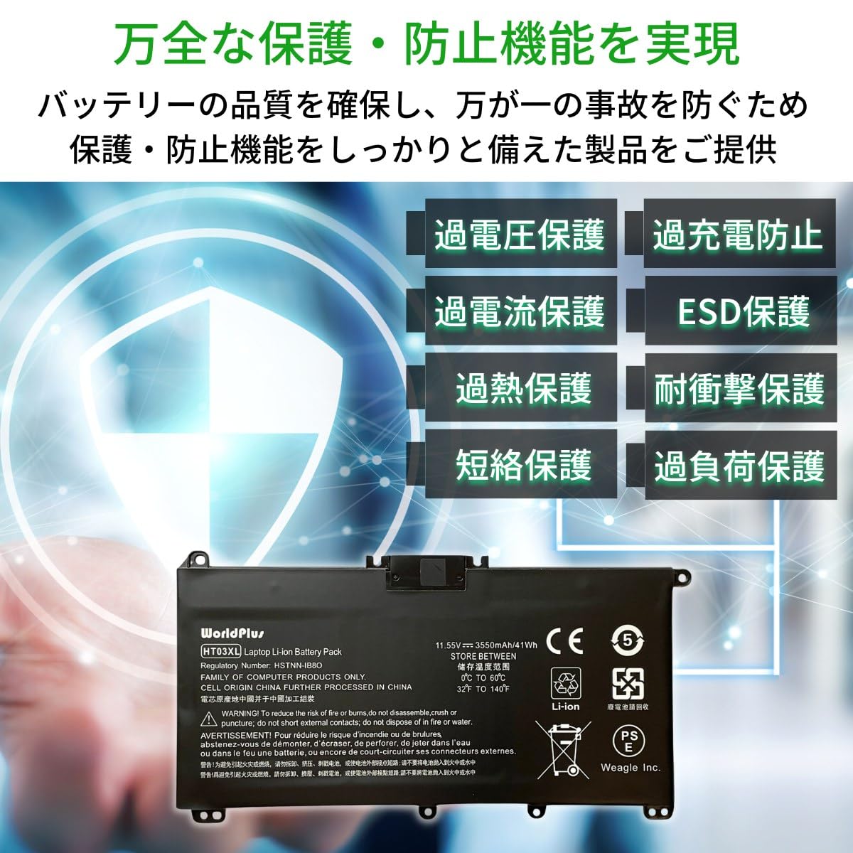 WorldPlus HT03XL バッテリー HP 15-da0000 15-db0000 / Pavilion 15-cs0000 15-cu0000 15-cu1000 対応