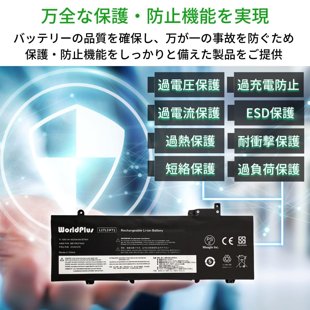 WorldPlus L17L3P71 01AV478 互換バッテリー レノボ Lenovo ThinkPad T480s 対応 01AV479 01AV480 L17M3P71