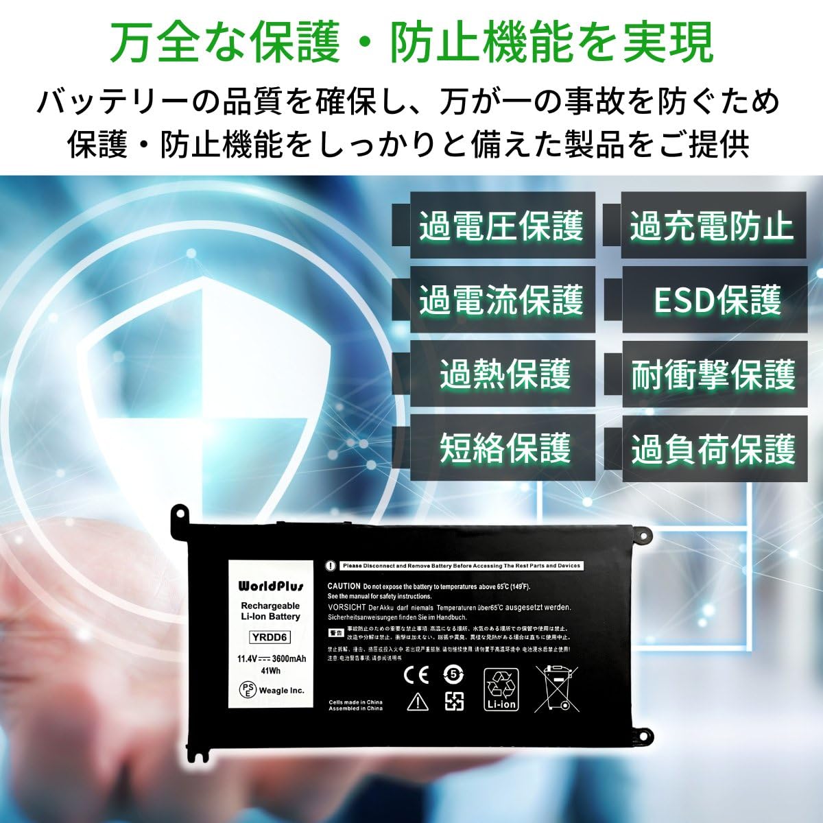 WorldPlus YRDD6 バッテリー Dell Inspiron 14 3000 5000 / 15 3000 5000 7000 / 17 3000 / 5481 5482 5485
